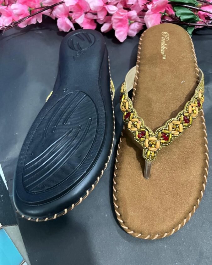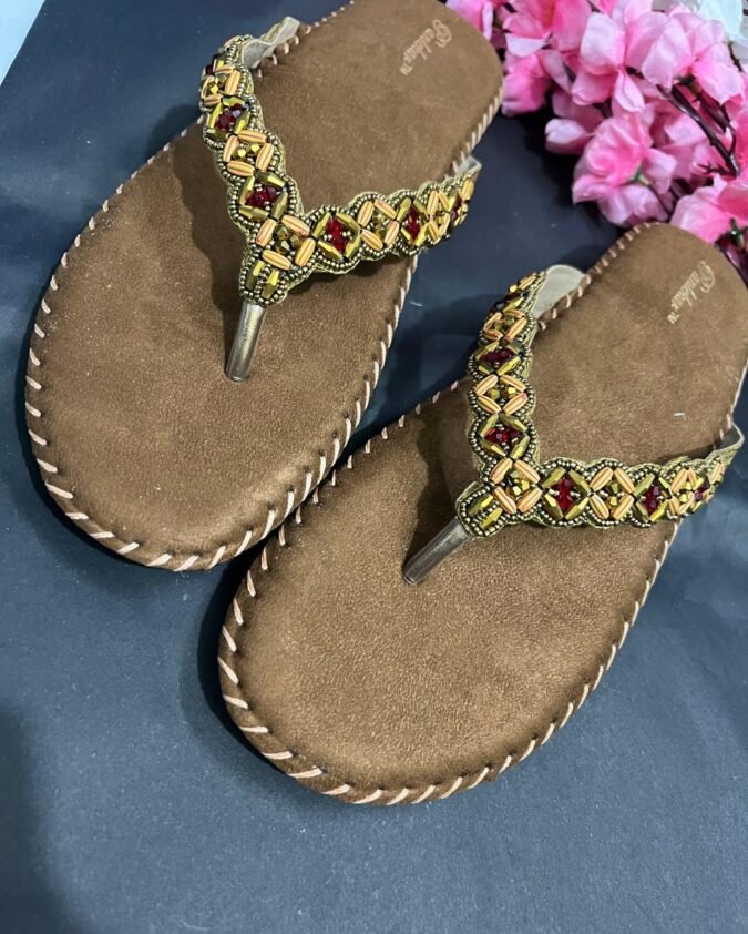 Brown Beaded Bliss Comfort Chappals
