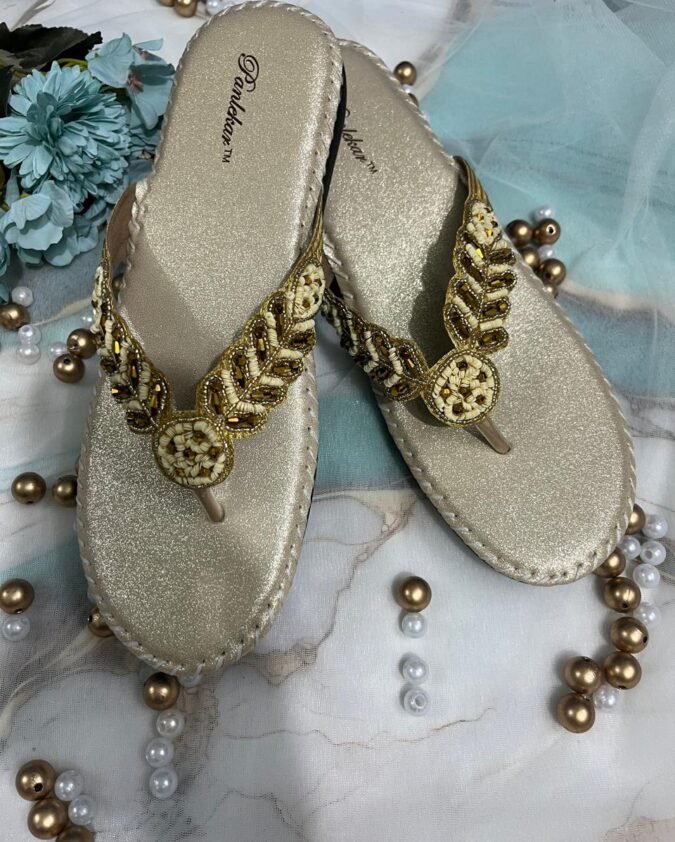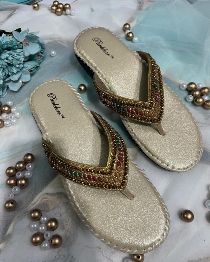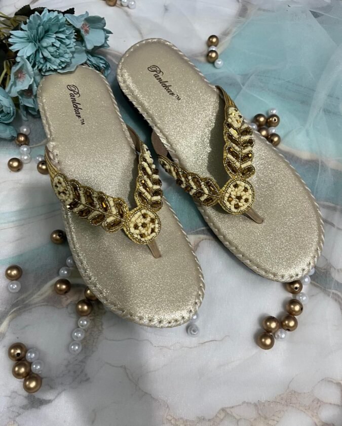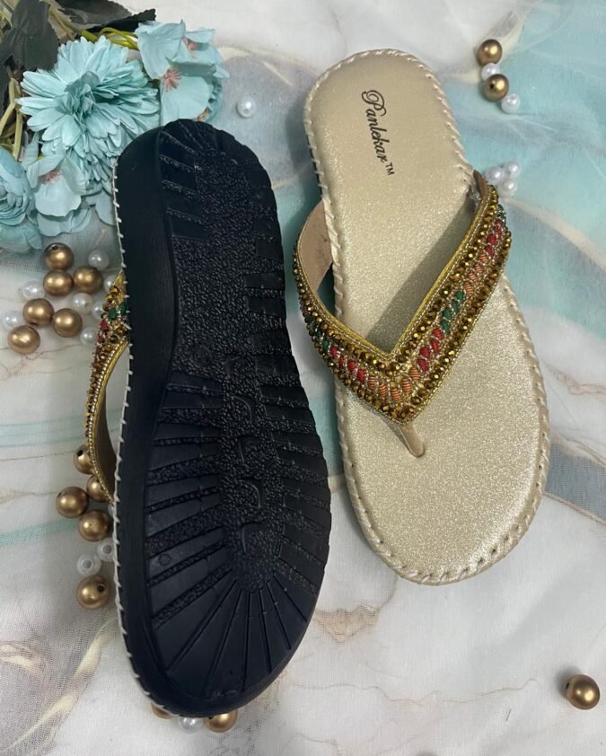 Golden Royal Sparkle Ethnic Chappals.