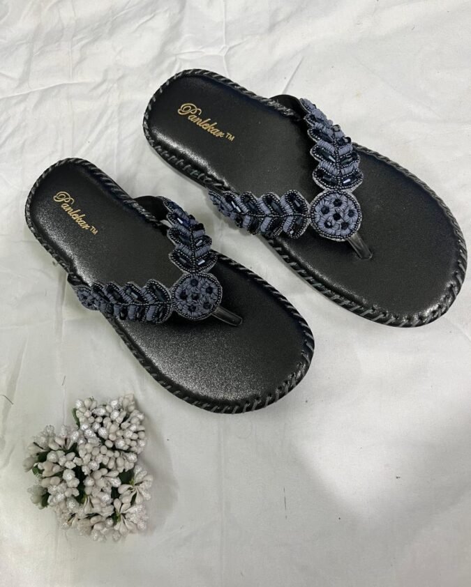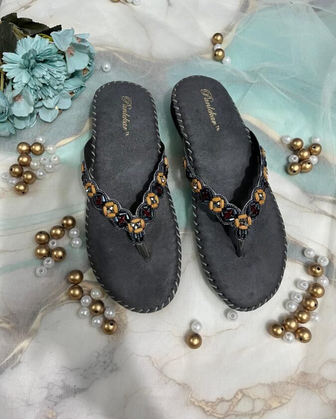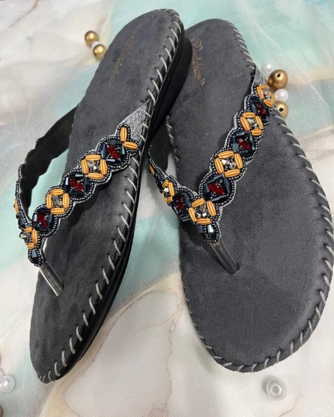 Gray Beaded Bliss Comfort Chappals