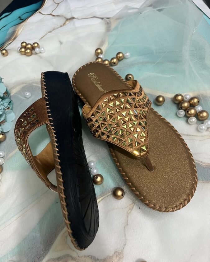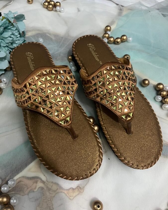 Golden Bronze ethnic slip-on sandals